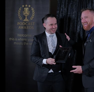 In this photo, Australian podcaster, Kain Masters, was honored on the world stage by Joshua 'Atlas' Aultman during our first cycle of this awards program.