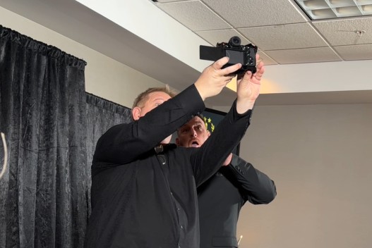 Photo: Bill turns the camera display screen around to get a "professional photo" of him and Atlas as he presents the award. This photo is posted to our YouTube channel if you are interested in how it turned out.